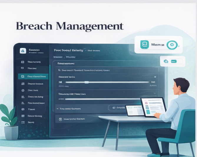 - 9-step breach workflow: Initial Report, Classification, Cause, Data Affected, Response, Risk Assessment, Notifications, Remediation, Review